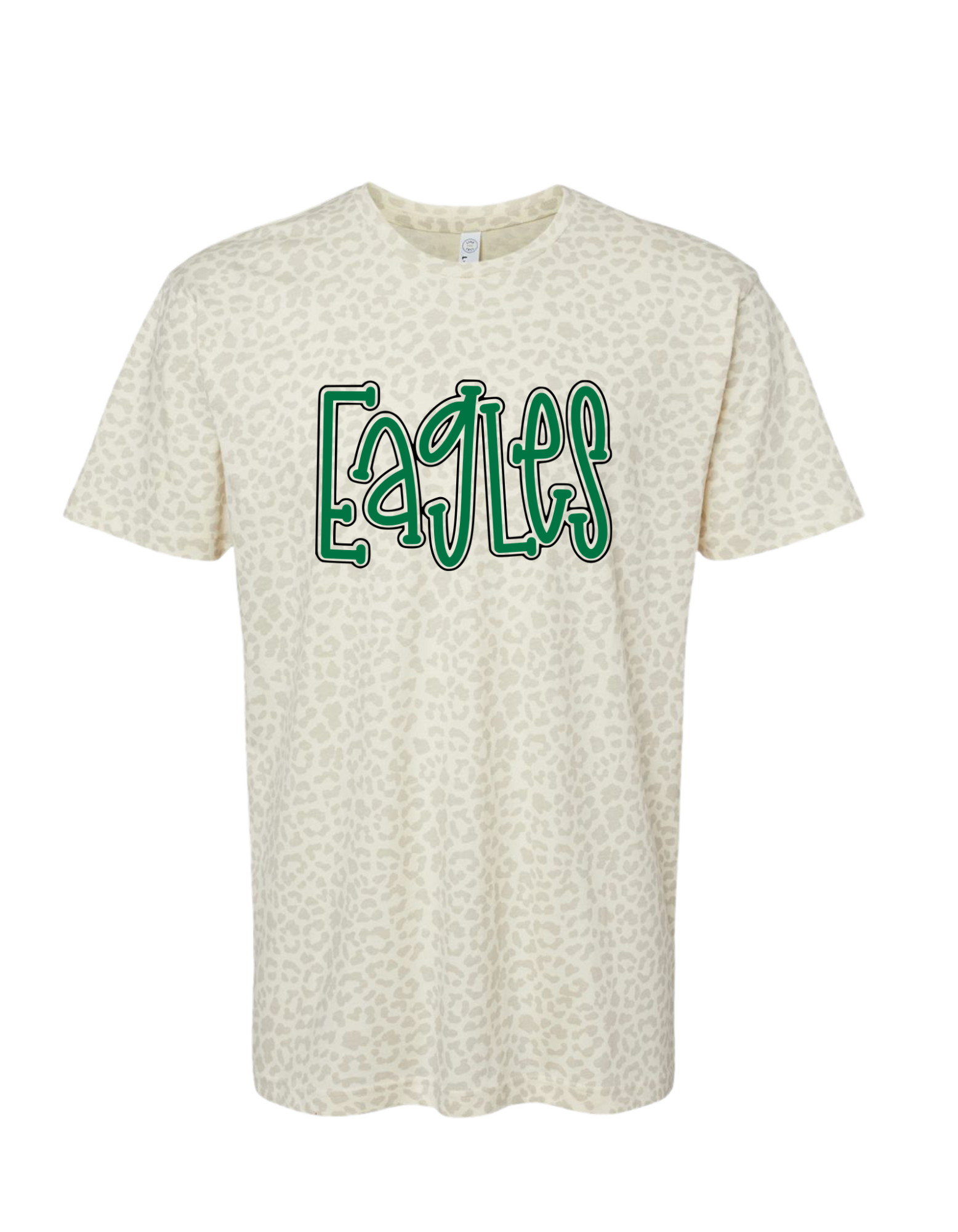 Natural Leopard T-Shirt with Eagles in a doodle font across chest