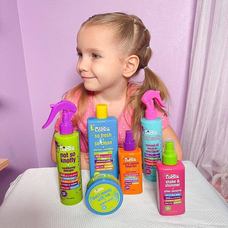 ROCK THE LOCKS conditioning detangler tames the toughest tangles while conditioning & adding body and moisture. Take your hair from knotty to not so knotty & enjoy beautiful shine.